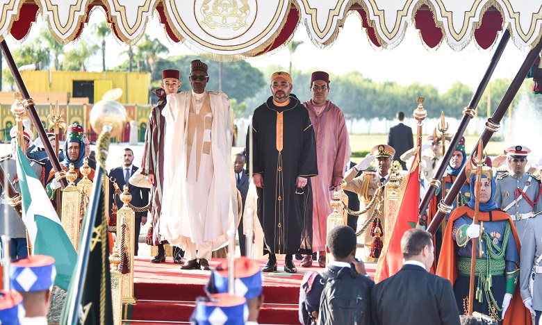 ترأس صاحب الجلالة الملك محمد السادس، نصره الله، اليوم الأحد، بساحة المشور بالقصر الملكي بالرباط، حفل استقبال رسمي على شرف رئيس جمهورية نيجيريا الفيدرالية، الذي يقوم بزيارة عمل وصداقة رسمية للمغرب.