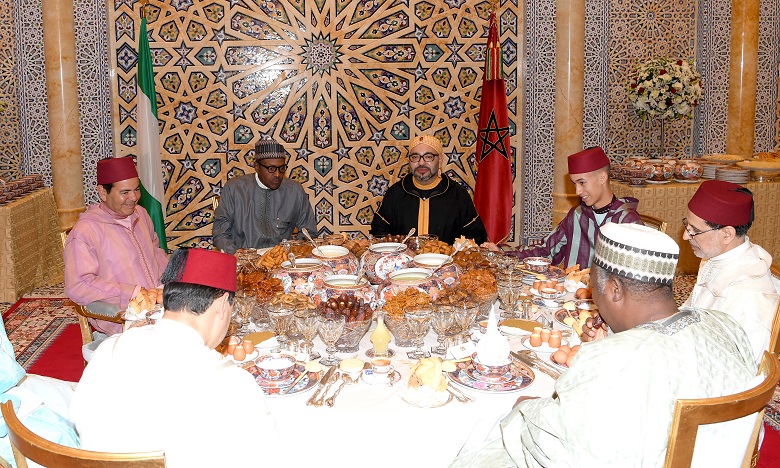 أقام صاحب الجلالة الملك محمد السادس، نصره الله مرفوقا بصاحب السمو الملكي ولي العهد الأمير مولاي الحسن، وصاحب السمو الملكي الأمير مولاي رشيد، اليوم الأحد بالقصر الملكي بالرباط، مأدبة إفطار رسمية على شرف رئيس جمهورية نيجيريا الفيدرالية، فخامة السيد محمدو بوهاري، والوفد المرافق له.