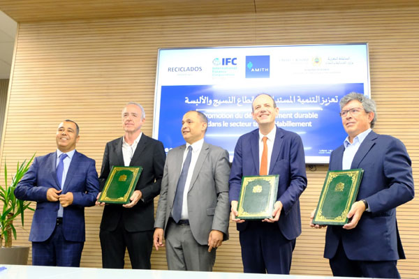 جرى بالرباط، توقيع بروتوكولي اتفاق بين وزارة الصناعة والتجارة ومؤسسة التمويل الدولية (IFC) والجمعية المغربية لصناعات النسيج والألبسة وشركة "ريسيكلادوس" Reciclados، وذلك في إطار تنمية قطاع النسيج المغربي ومواكبة انتقاله الطاقي.