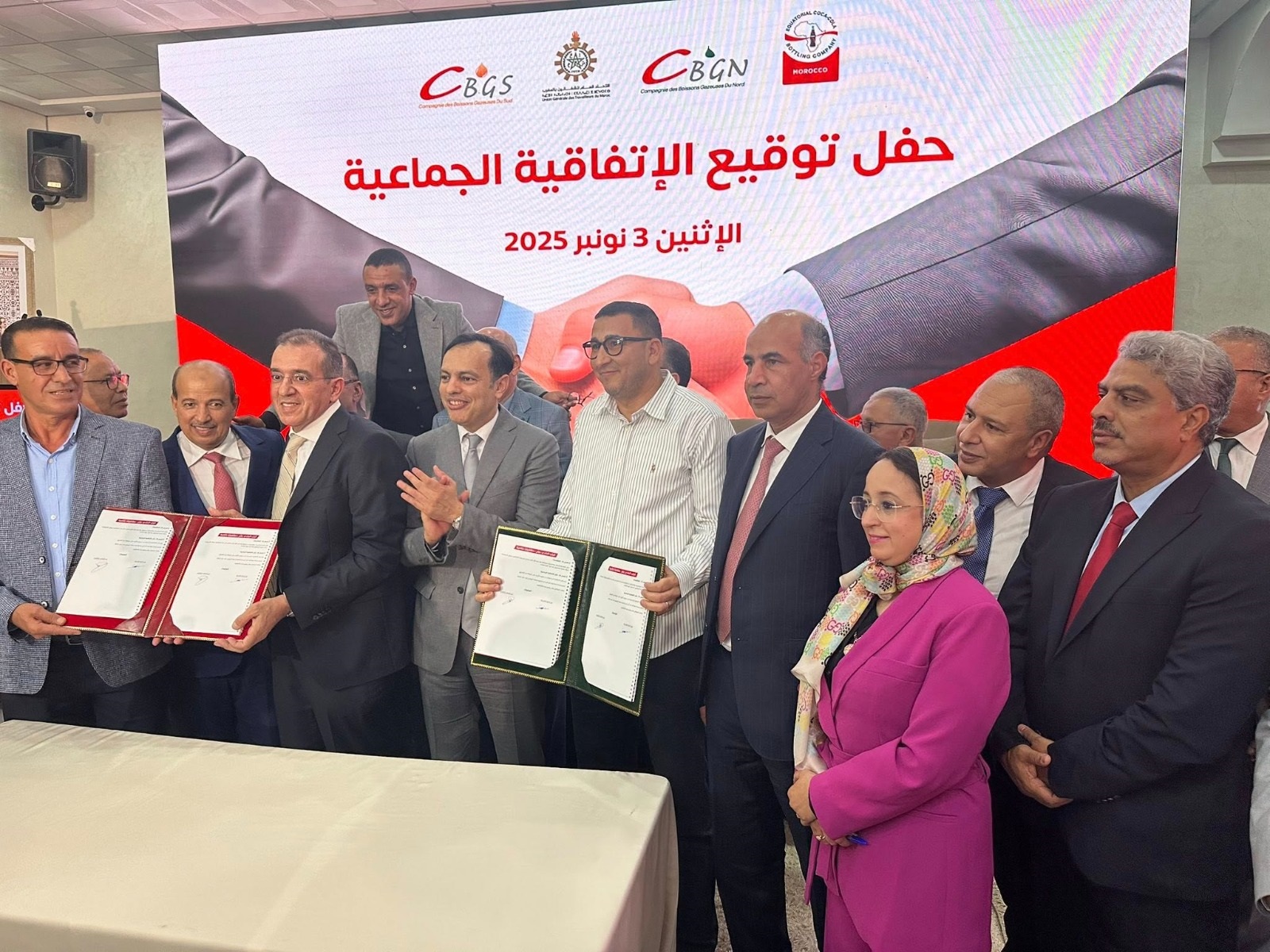 وقع الاتحاد العام للشغالين بالمغرب، يوم الإثنين 3 نونبر بفاس، اتفاقية شغل جماعية مع شركتي المشروبات الغازية الشمال والمشروبات الغازية الجنوب، تهدف إلى تنظيم علاقات الشغل، توفير ظروف ملائمة للعمل، ضمان حقوق الأجراء، والارتقاء بالجانب الاجتماعي لهم، بالإضافة إلى خلق آليات حوار وتفاوض سلمية تضمن الاستقرار داخل المقاولة.