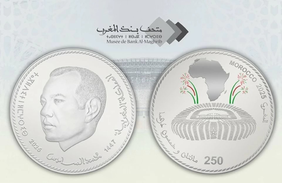 أعلن بنك المغرب، اليوم الاثنين، عن إصدار قطعة نقدية تذكارية فضية من فئة 250 درهما وطرح ورقة بنكية تذكارية من فئة 100 درهم للتداول، وذلك بمناسبة تنظيم الدورة الـ 35 من كأس أمم إفريقيا - المغرب 2025.