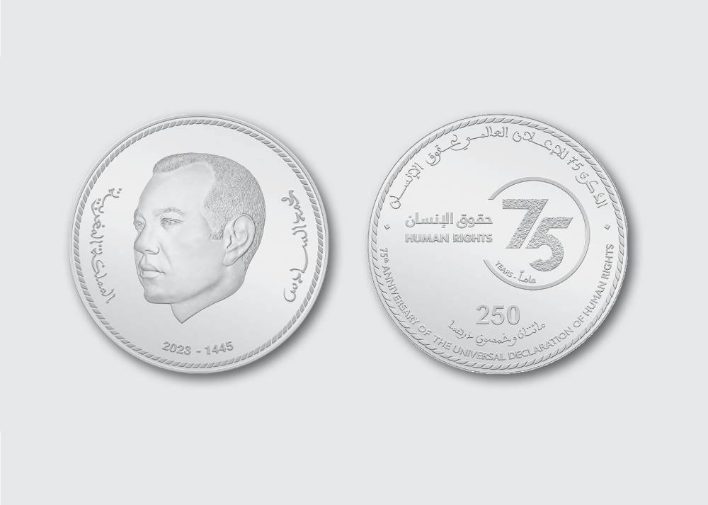 أصدر بنك المغرب، الخميس، قطعة نقدية تذكارية فضية من فئة 250 درهما، وذلك في إطار الاحتفاء بالذكرى الخامسة والسبعين للإعلان العالمي لحقوق الإنسان بشراكة مع المجلس الوطني لحقوق الإنسان.