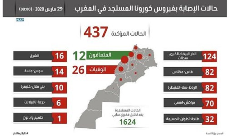 فيروس كورونا : تسجيل 35 حالة مؤكدة جديدة بالمغرب ترفع العدد الإجمالي إلى 437 حالة