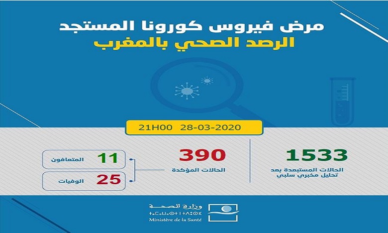فيروس كورونا: تسجيل 31 حالة جديدة مؤكدة بالمغرب وارتفاع العدد إلى 390 حالة