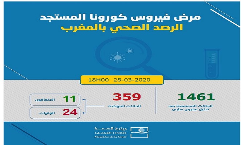 فيروس كورونا: تسجيل 26 حالة جديدة مؤكدة بالمغرب وارتفاع العدد إلى 359 حالة