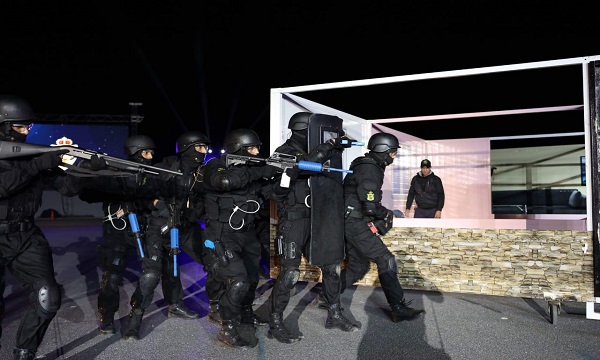 صنعت "عروض احترافية" قدمتها فرق شرطية وعناصر من الوحدات الخاصة التابعة لمديرية مراقبة التراب الوطني "الديستي"، في المعهد الملكي للشرطة بالقنيطرة، أول أمس الأربعاء، الحدث في الذكرى الـ 62 لتأسيس المديرية العامة للأمن الوطني.
