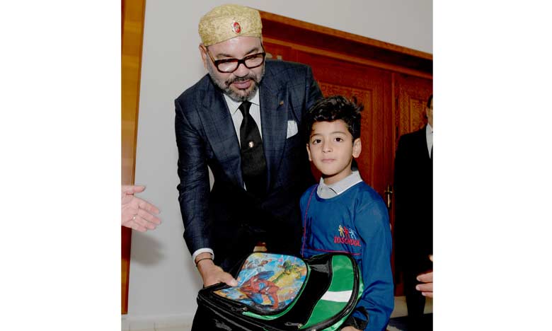 كما أشرف صاحب الجلالة، نصره الله، على التسليم الرمزي لمحفظات ومقررات مدرسية لفائدة 10 تلاميذ من مدرسة عثمان بن عفان ومن الثانوية الإعدادية سيدي يحيى زعير، الموجودتين بعمالة الصخيرات-تمارة.