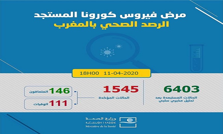 وأضافت الوزارة، على لسان محمد اليوبي، مدير مديرية علم الأوبئة ومكافحة الأمراض بوزارة الصحة، خلال اللقاء الصحفي اليومي الذي تعقده الوزارة للإعلان عن مستجدات الحالة الوبائية بالمغرب، أن عدد الحالات المستبعدة بعد تحليل مخبري سلبي بلغ 6403 حالات.