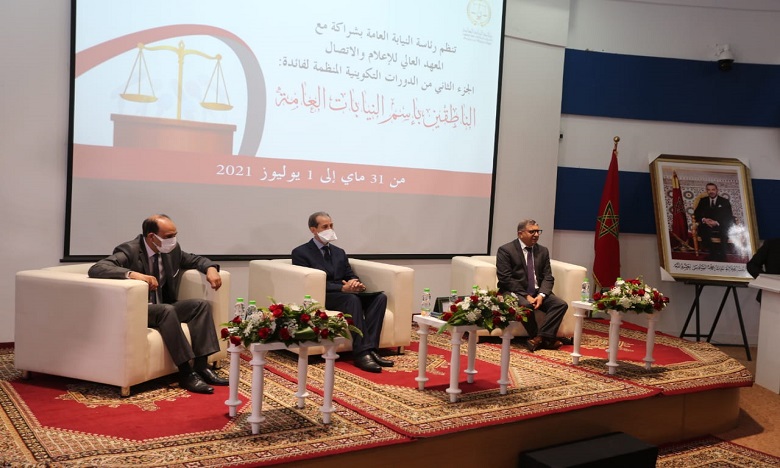 وفي هذا الصدد، قال مولاي الحسن الداكي الوكيل العام للملك لدى محكمة النقض رئيس النيابة العامة، إن رئاسة النيابة العامة بادرت إلى إطلاق برنامج طموح لتكوين الناطقين باسم النيابات العامة منذ سنة 2019، وشرعت في تفعيل هذا البرنامج على أرض الواقع بشراكة مع المعهد العالي للإعلام والاتصال تنزيلا للاستراتيجية التي اعتمدتها في مجال التواصل".