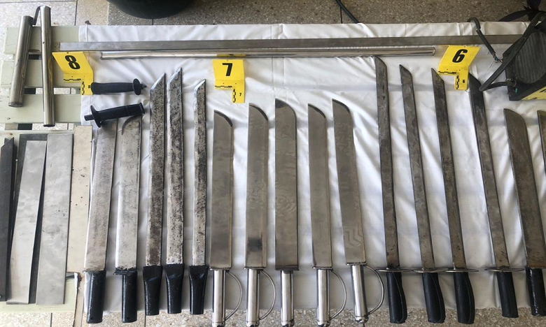 وقد تم توقيف المشتبه فيهم التسعة على ضوء معلومات دقيقة تشير إلى الاشتباه في استغلالهم لورشات خاصة بالحدادة في تصنيع أسلحة بيضاء من مواد أولية من الحديد والصلب، عبارة عن سكاكين من الحجم الكبير وسيوف وأدوات قاطعة، وذلك من أجل ترويجها لفائدة مشتبه فيهم متورطين في ارتكاب اعتداءات جسدية وأفعال إجرامية موسومة بالعنف.