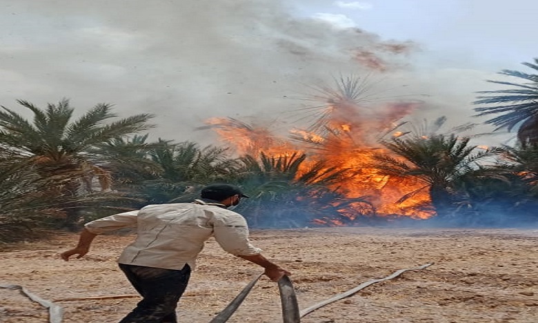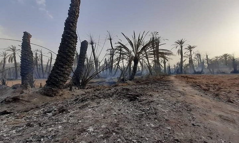 واندلعت الشرارة الأولى للحريق حوالي التاسعة صباحا، وانتشرت بسرعة، بسبب الرياح القوية ووضعية أشجار النخيل اليابسة نتيجة الجفاف والإهمال.
