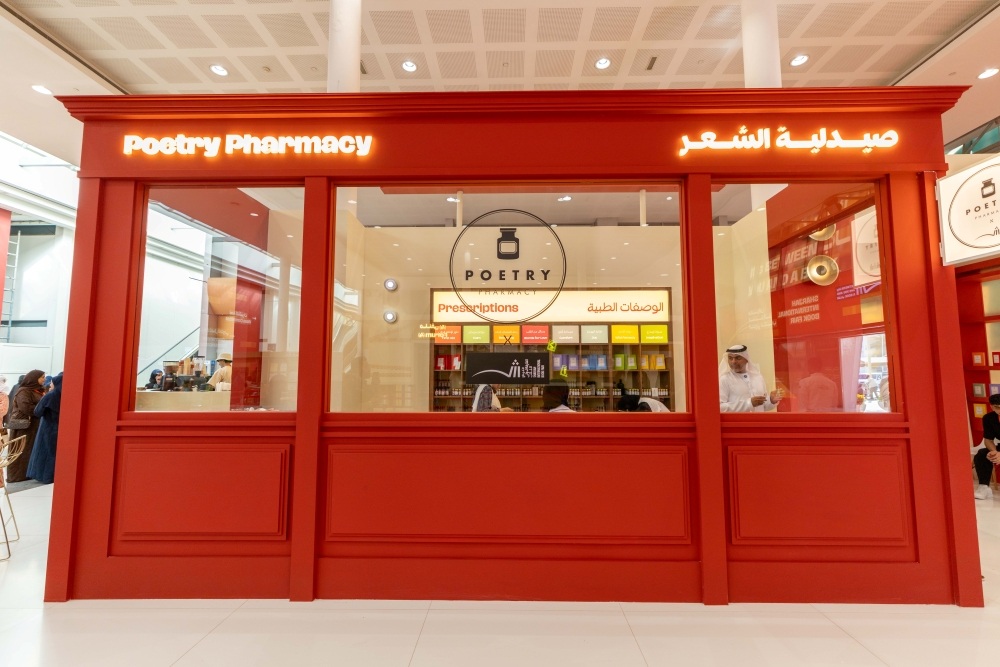 في جناح يغمره الضوء والدهشة، توقفت جموع من زوار معرض الشارقة الدولي للكتاب أمام فكرة لم يعتادوها من قبل، "صيدلية الشعر"، فهنا لا تصرف الأدوية الكيميائية، بل تقدم القصائد على هيئة جرعات علاجية، تعبر عن حالات إنسانية متباينة، وتدعو إلى الشفاء بالمعنى والجمال والكلمة.
