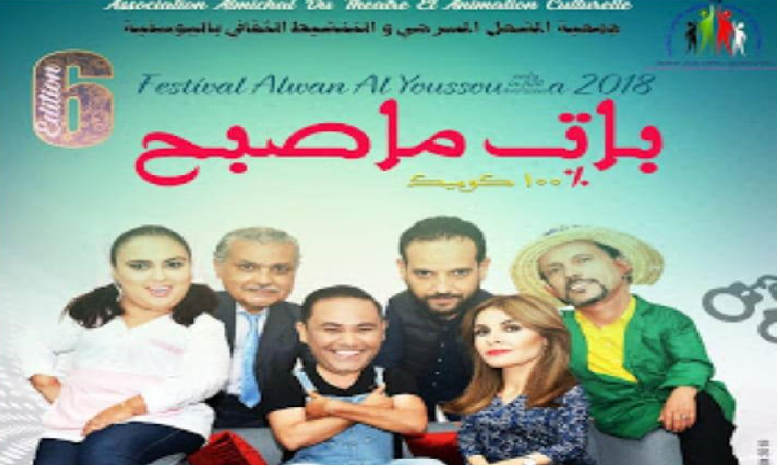 وستشهد الدورة السادسة من المهرجان، الذي ينظم بشراكة مع وزارة الثقافة، والمجلس البلدي لليوسفية، وبتعاون مع المجلس الإقليمي وعمالة اليوسفية، احتفاء بذكرى 19 لعيد العرش المجيد، مشاركة ألمع نجوم المسرح، والكوميديا، والغناء، إذ سيكون البرنامج غنيا ومتنوعا من خلال مشاركة كل من الفنان موس ماهر، والفنان سامي راي، ومجموعة رباب فيزوين، ومجموعات فنية محلية، كما سيعرض مسرحية "بات ما صبح" من تشخيص الفنان سعد دسولي، فاطمة خير، سكينة درابيل، جواد الخودي، بنعسى الجراري، وفؤاد سعد الله، أما بالنسبة للفقرة الخاصة بالفكاهة، فسيكون جمهور المهرجان مع أشهر الفكاهيين المغاربة، ويتعلق الأمر بجواج، وصويلح، والثنائي شلاهبية.