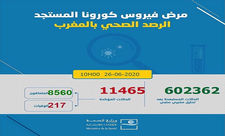 وأضافت الوزارة، على بوابتها الرسمية الخاصة بفيروس كورونا المستجد بالمغرب “www.covidmaroc.ma”، أن عدد الحالات التي تماثلت للشفاء من المرض حتى الآن ارتفع الى 8560 حالة بعد تماثل 60 حالة جديدة للشفاء، بينما استقر عدد الوفيات في 217.