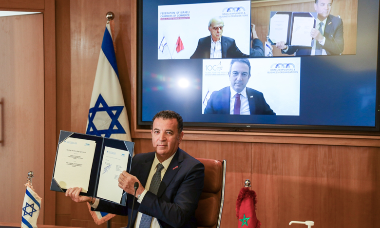 وقع شكيب العلج، رئيس الاتحاد العام لمقاولات المغرب، ورون تومر، رئيس هيئة المشغلين وأرباب الأعمال الإسرائيلية وجمعية مصنعي إسرائيل، إضافة إلى يوريل لين، رئيس اتحاد غرف التجارة الإسرائيلية، أول أمس الاثنين، من خلال المناظرة المرئية، اتفاقية شراكة استراتيجية من أجل تعزيز العلاقات الاقتصادية والتجارية والتطوير التكنولوجي بين المغرب وإسرائيل.