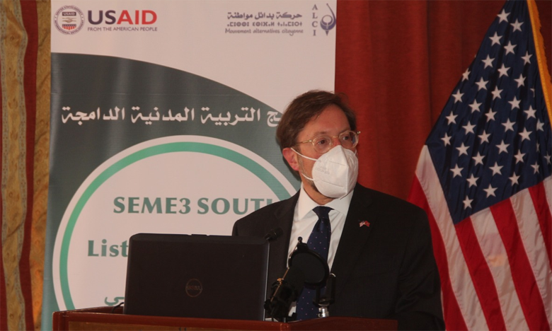 وأشار القائم بأعمال السفارة الأمريكية بالمغرب، إلى برنامج التربية المدنية الدامجة الممول من طرف الوكالة الأمريكية للتنمية الدولية، إذ تم اختيار ثلاثة فائزين من جمعيات المجتمع المدني بالمغرب من أجل تنفيذه، ويسعى البرنامج إلى دعم العملية الديمقراطية والإدماج السياسي.
